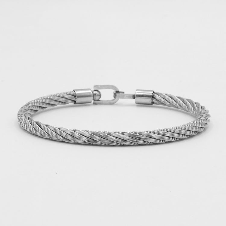 Crafted with precision, its durable twisted wire design offers a modern, industrial edge, while the lobster clasp ensures a secure and comfortable fit. Perfect for everyday wear or statement layering.
